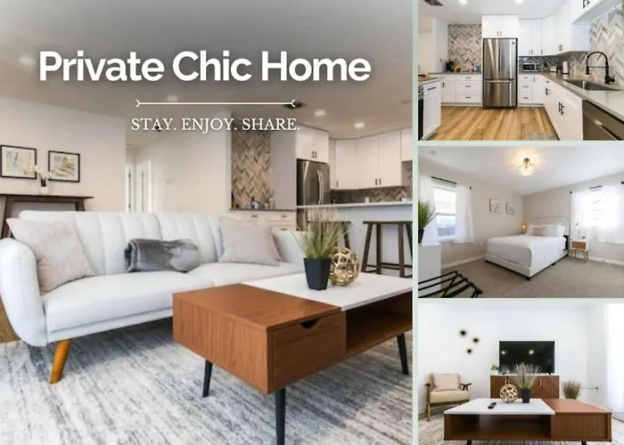 Ao ficar noo apartamento Private Chic 2 Bathroom 10 Min To Downtown With Fast Wifi, os hóspedes têm acesso para área de estar, pátio e varanda equipados com controle de temperatura. Os visitantes do alojamento irão desfrutar do conforto de uma casa de banho com secador de cabelo, lençóis de banho e toalhas. Também encontrará casa de banho separada e chuveiro.